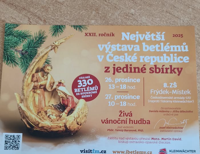 Nenechte si ujít největší výstavu betlémů v České republice z jedné sbírky, kterou každoročně navštíví přes 10 000 lidí z České republiky i ze světa. Těšit se můžete na více než 330 exponátů ze 17 zemí světa, včetně jednoho pohyblivého betlému. Nejstarší exponát je z roku 1870.